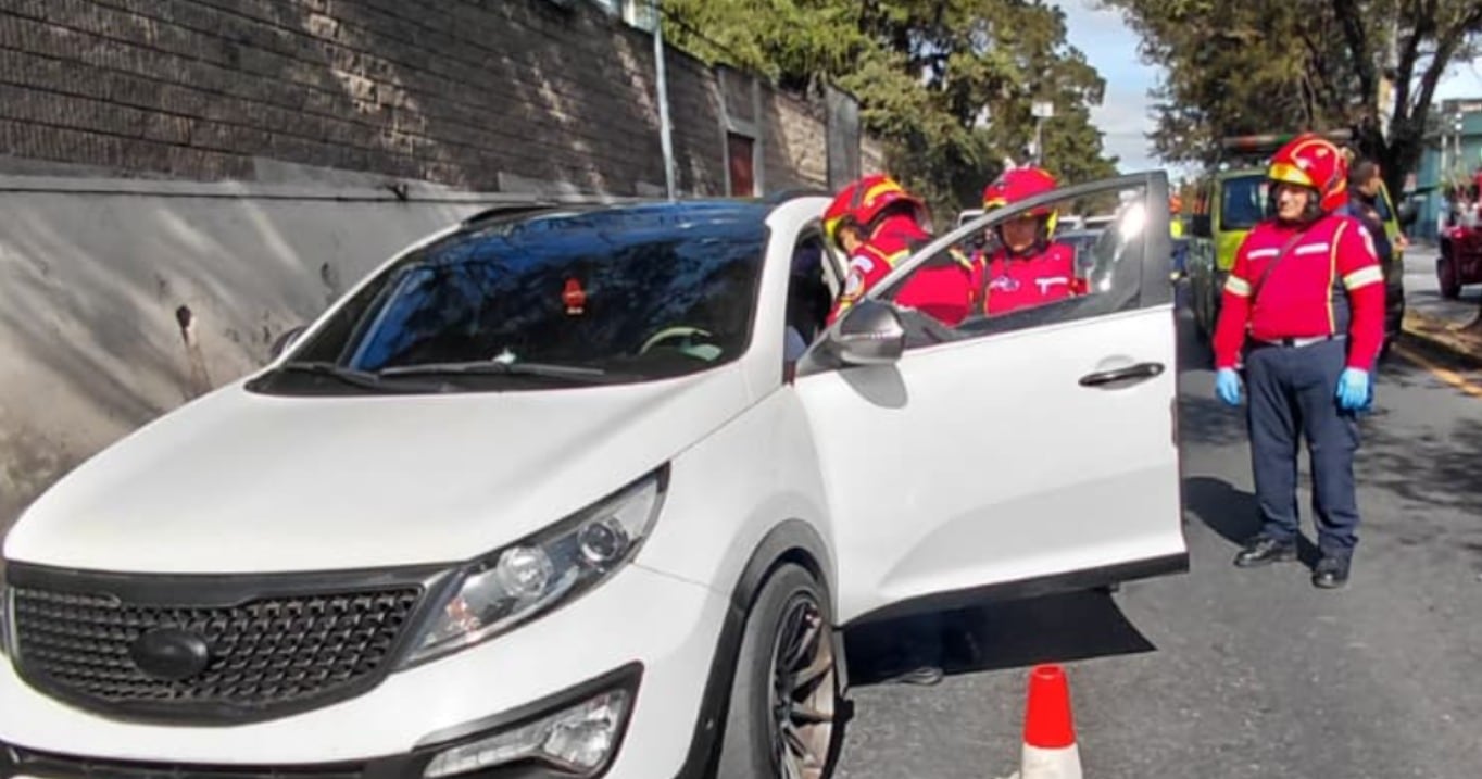 Según los Bomberos Municipales, la víctima fue encontrada dentro del vehículo con crisis nerviosa y una herida en el rostro causada por fragmentos de vidrio de la ventanilla.