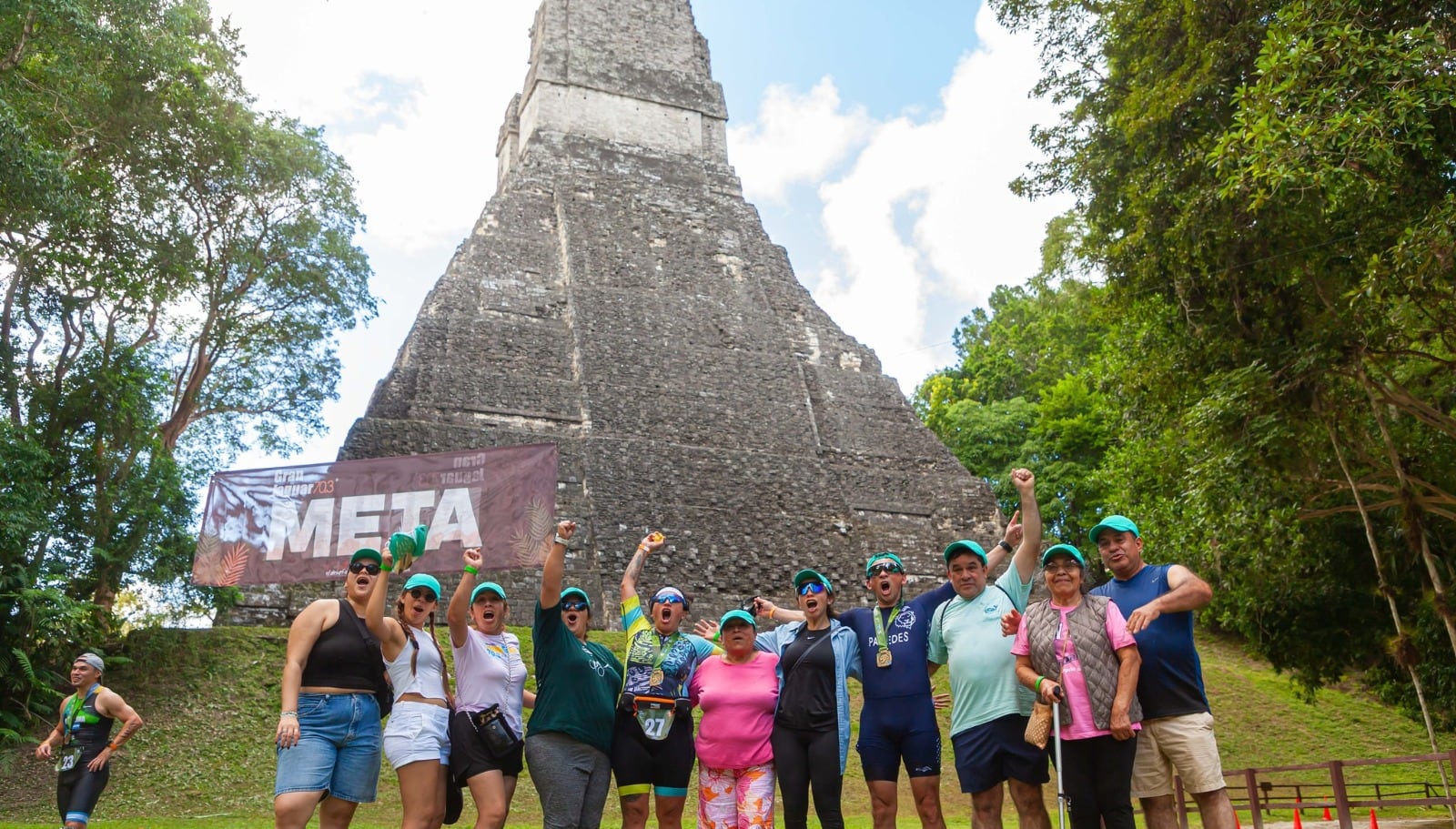 La meta no podría ser más espectacular: el Templo IV, la estructura más alta del sitio arqueológico, donde los corredores culminarán su aventura con vistas impresionantes que dominan el dosel de la selva petenera.
