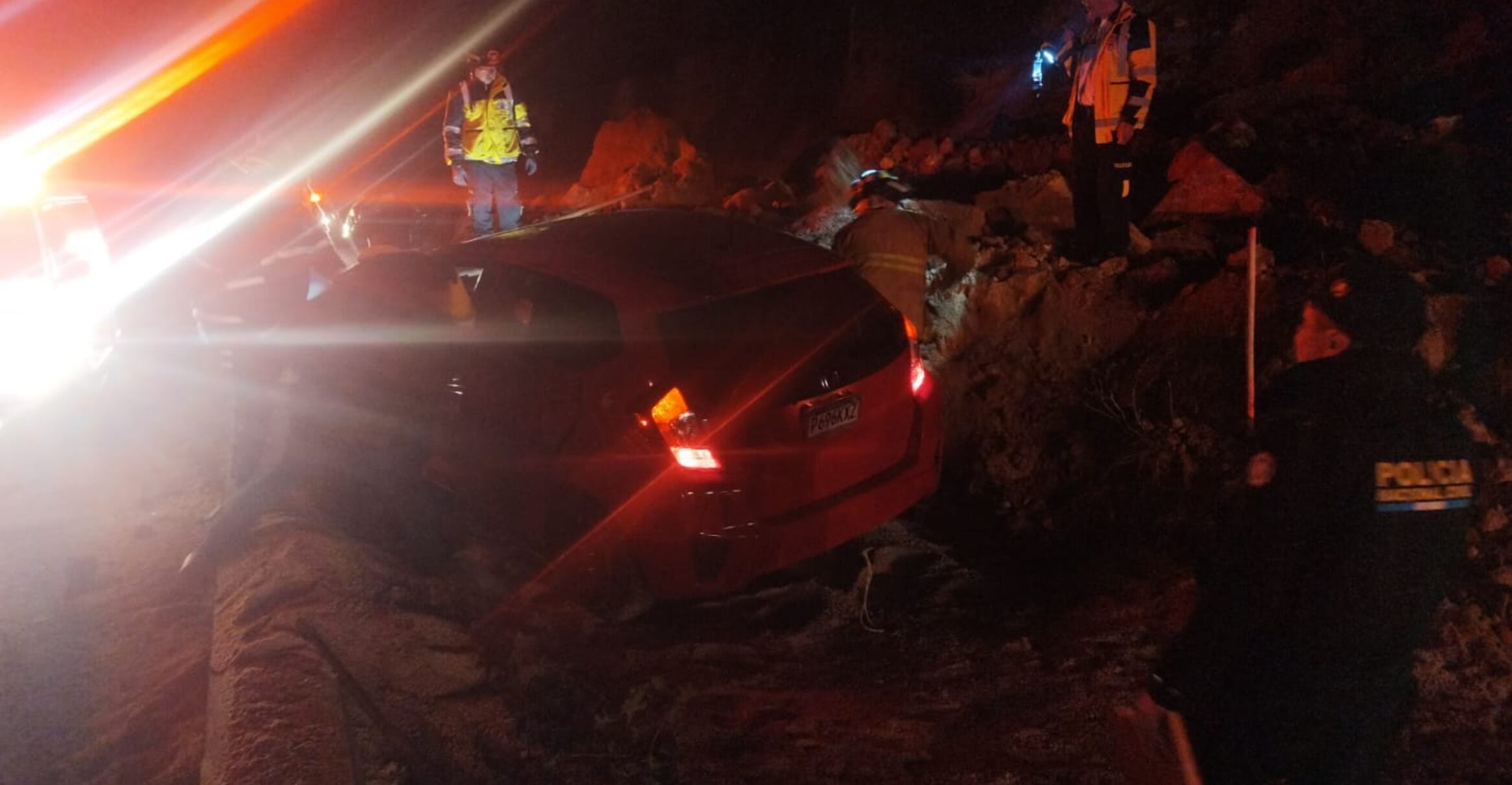 Un incidente se registró este martes 3 de febrero sobre el Libramiento de Chimaltenango, donde un deslizamiento de tierra cayó sobre un vehículo tipo sedán que transitaba por el sector, provocando pánico a tres tripulantes del mismo.