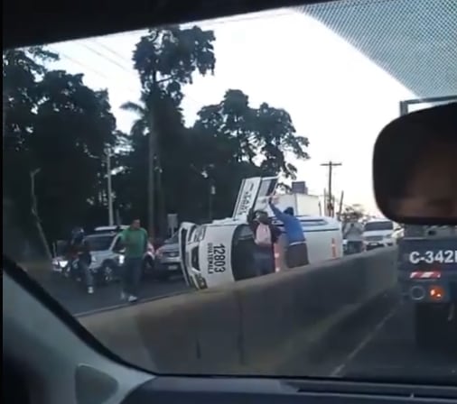 El vehículo quedó con las llantas hacia arriba, obstruyendo el paso y generando alarma entre quienes transitaban por esta importante arteria vial.