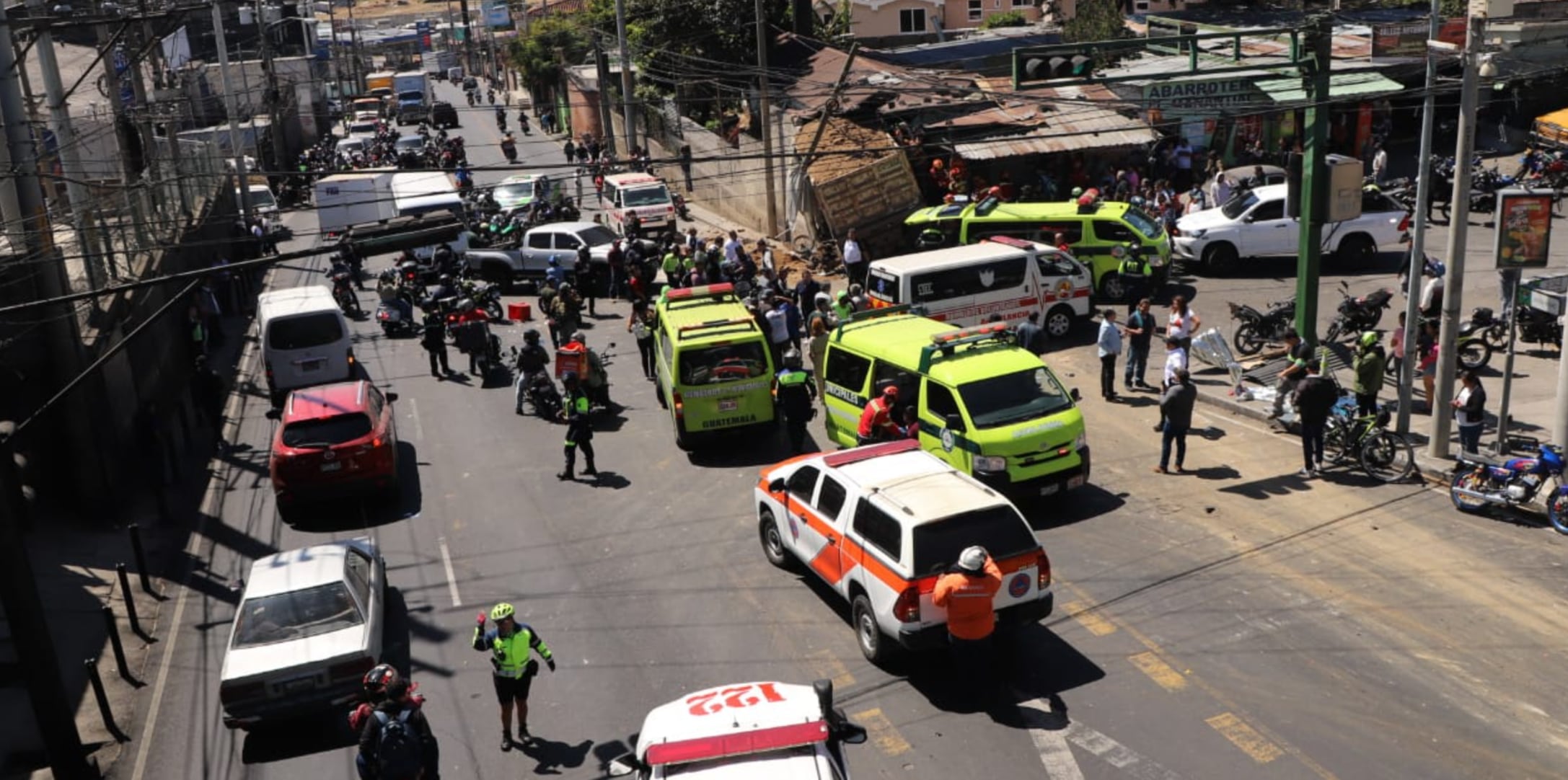 Videos que circulan en redes sociales muestran el momento en que cuerpos de socorro realizaron la extracción del piloto de un camión involucrado en un accidente de tránsito ocurrido en la avenida Hincapié, zona 13 de la capital.