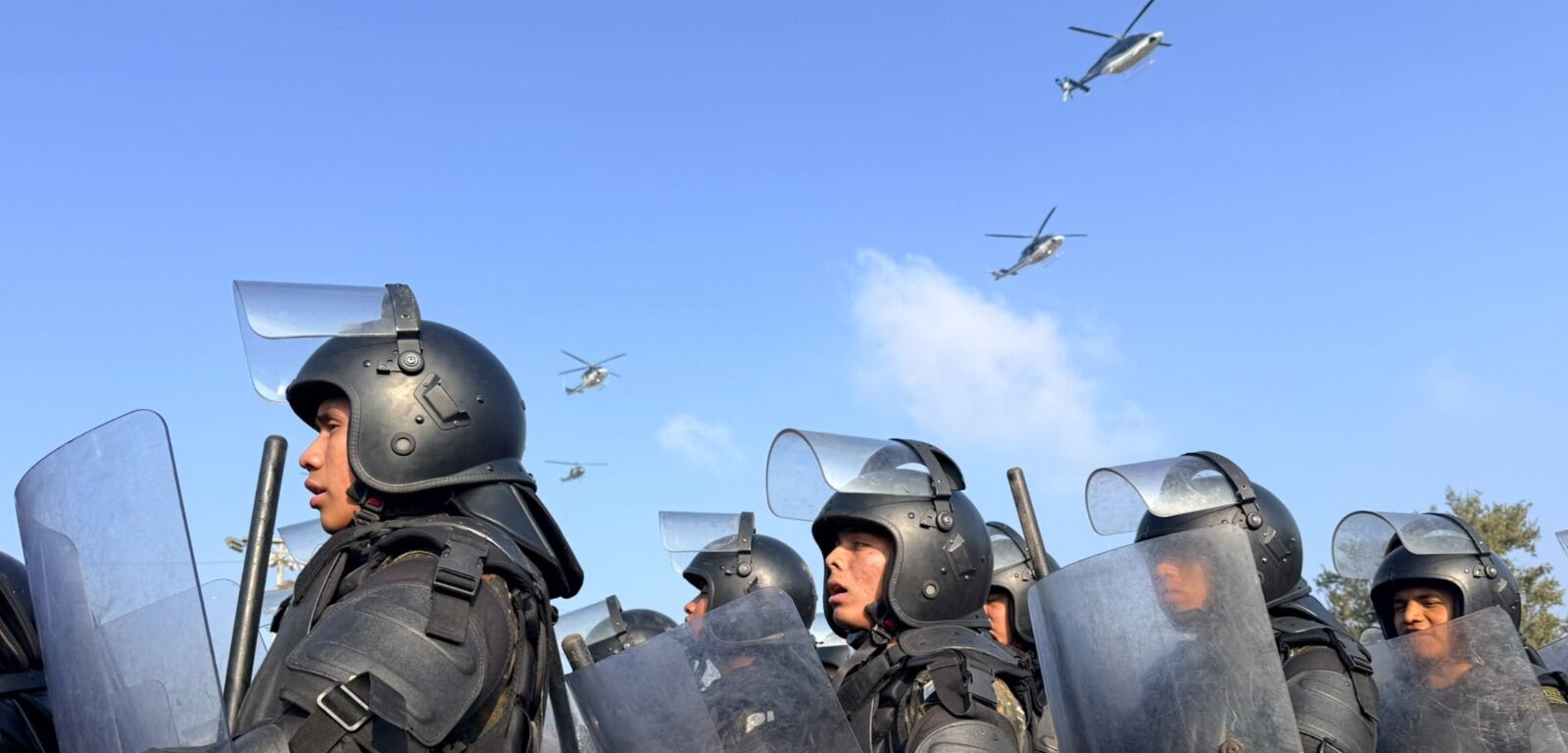 El Ministerio de Gobernación (Mingob) compartió con Publinews una grabación que muestra el inicio del primer operativo aéreo del Plan Centinela, cuando cinco helicópteros de las fuerzas de seguridad despegan durante un acto realizado en los campos de La Alameda, zona 18, este martes 17 de febrero.