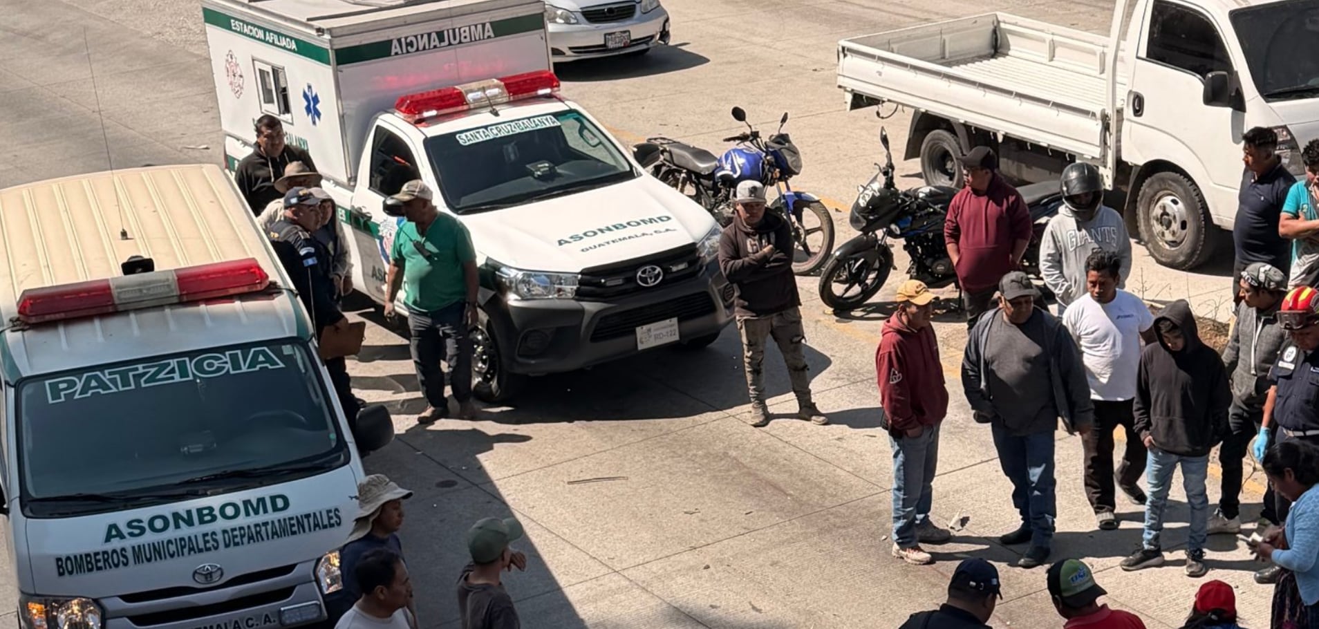 Elementos de Bomberos Municipales Departamentales, de las estaciones de Patzicía y Santa Cruz Balanyá, acudieron al lugar tras recibir el reporte de un accidente de tránsito.