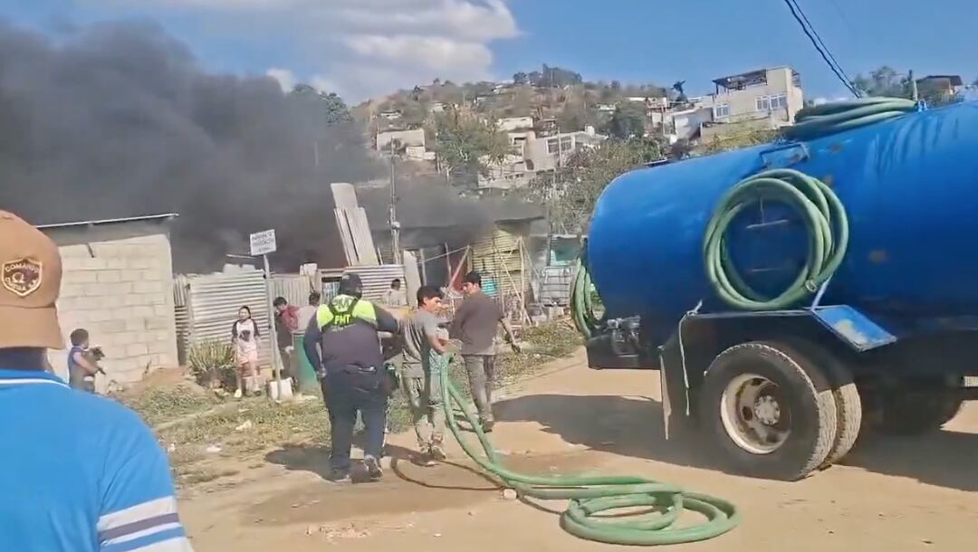 De acuerdo con videos difundidos en redes sociales, el piloto del vehículo pesado utilizó el agua que transportaba para colaborar mientras llegaban los bomberos, ayudando a contener el fuego y evitar que se propagara a viviendas cercanas.
