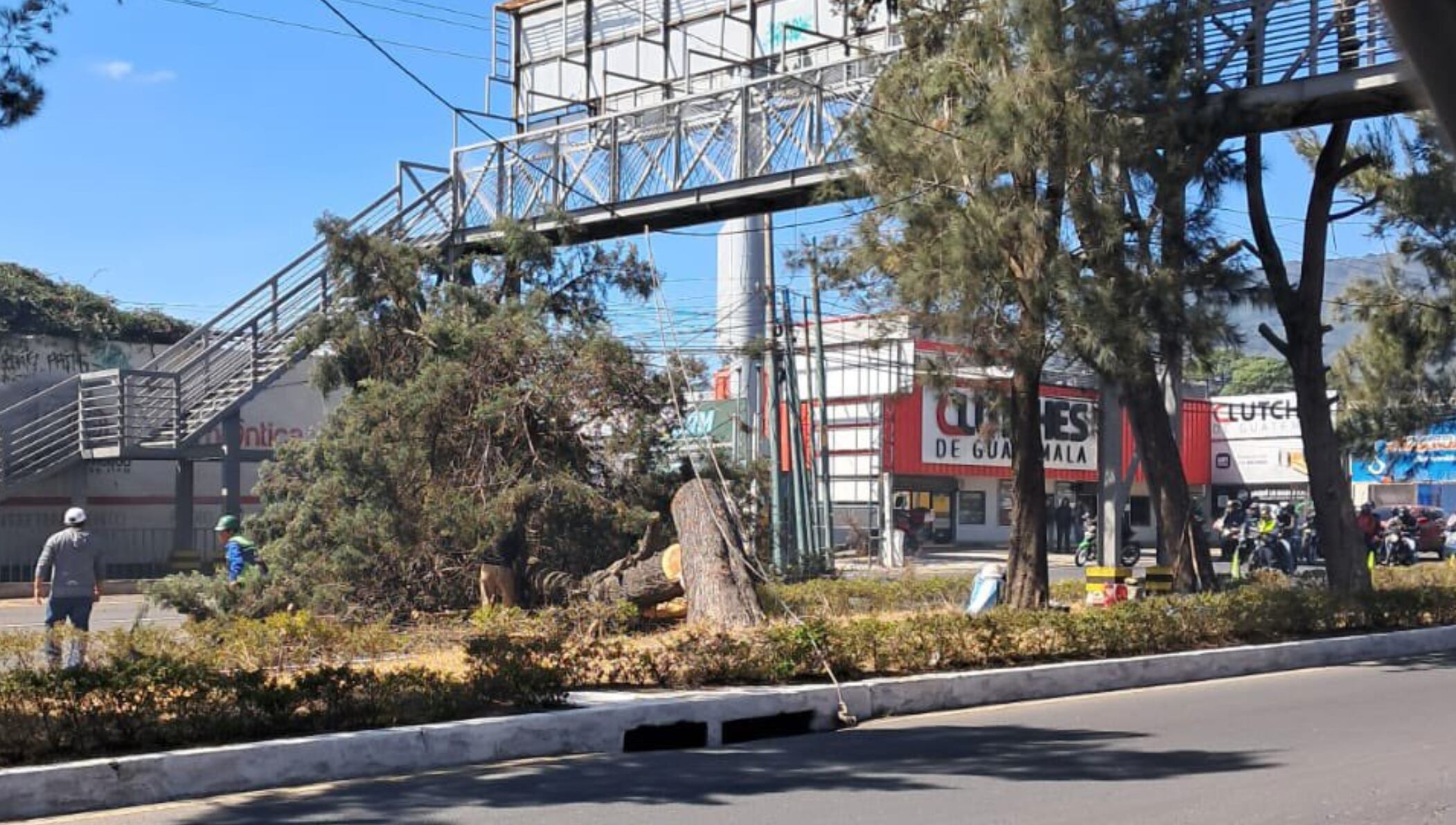 La circulación fue detenida temporalmente en el kilómetro 14.5 de la Calzada Roosevelt, con dirección hacia la Ciudad de Guatemala, debido a la tala de un árbol de gran tamaño que ya representaba riesgo de desplomarse sobre la vía.
