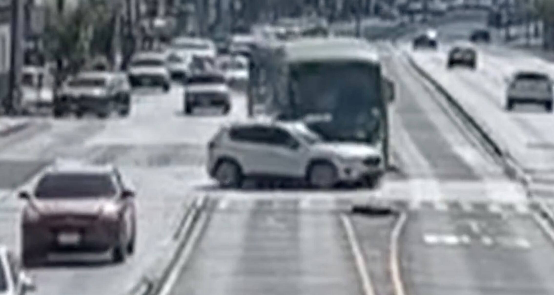 Un fuerte accidente de tránsito quedó grabado por una cámara de seguridad en la Avenida Bolívar, cuando un vehículo particular realizó un cruce indebido en la ruta exclusiva del Transmetro y terminó impactando contra la unidad del transporte público.