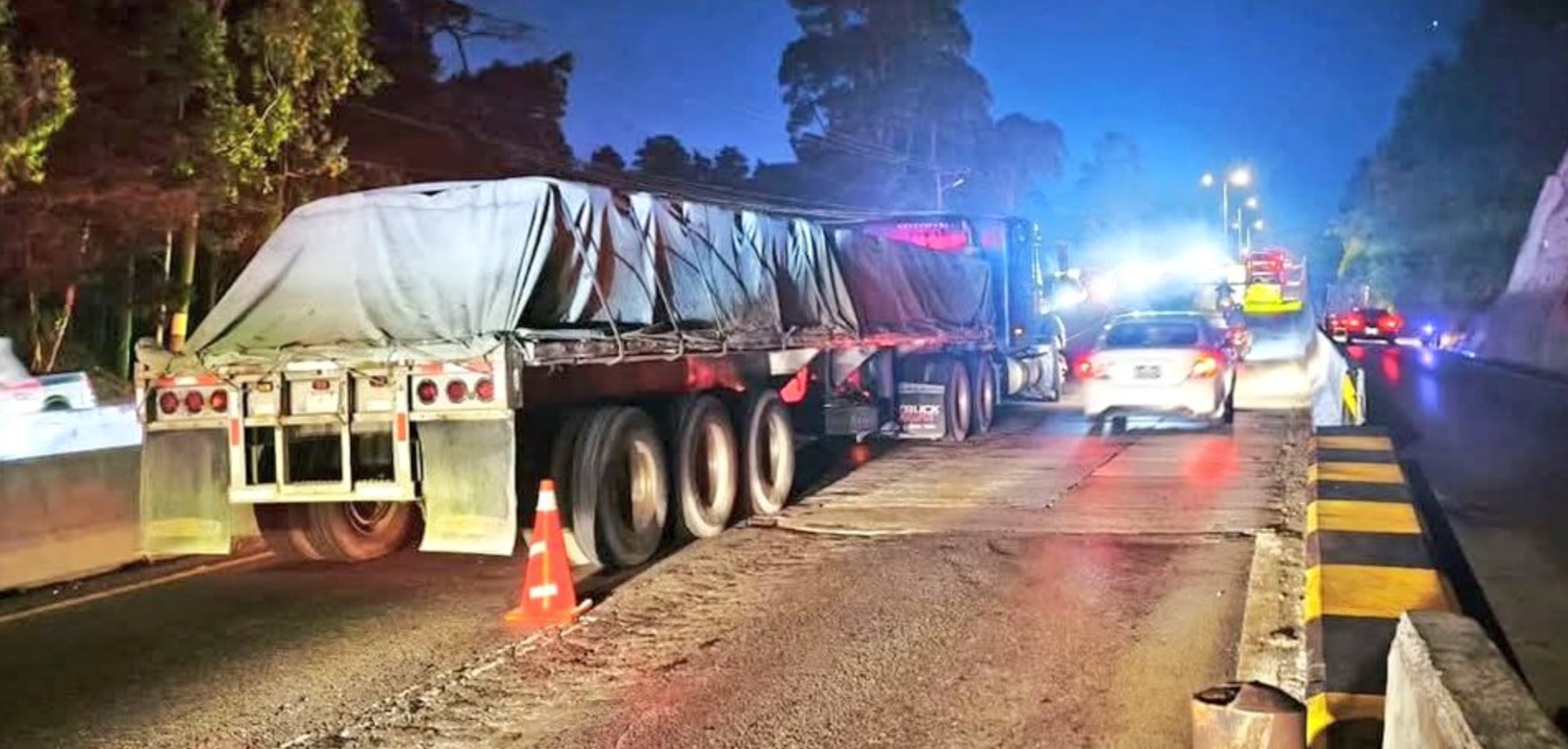 Un tráiler con desperfectos mecánicos quedó varado en el kilómetro 12.5 de la Carretera a El Salvador (CAES), en dirección hacia Oriente, lo que ha generado complicaciones en la movilidad del sector.