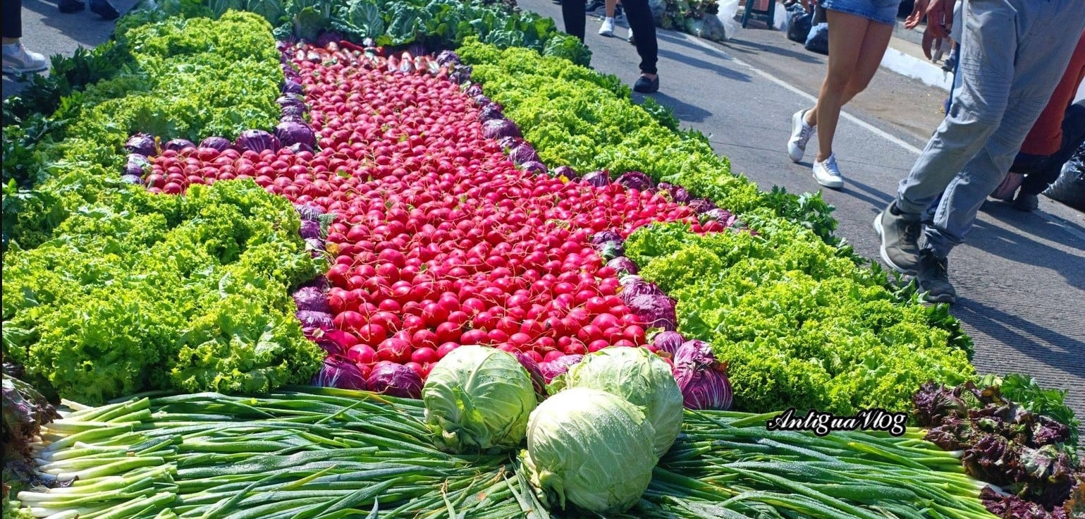 En el marco del tercer domingo de Cuaresma, fieles y vecinos de Jocotenango elaboraron una impresionante alfombra hecha completamente con verduras para recibir el paso de la consagrada imagen de Jesús Nazareno El Dulce Rabí.
