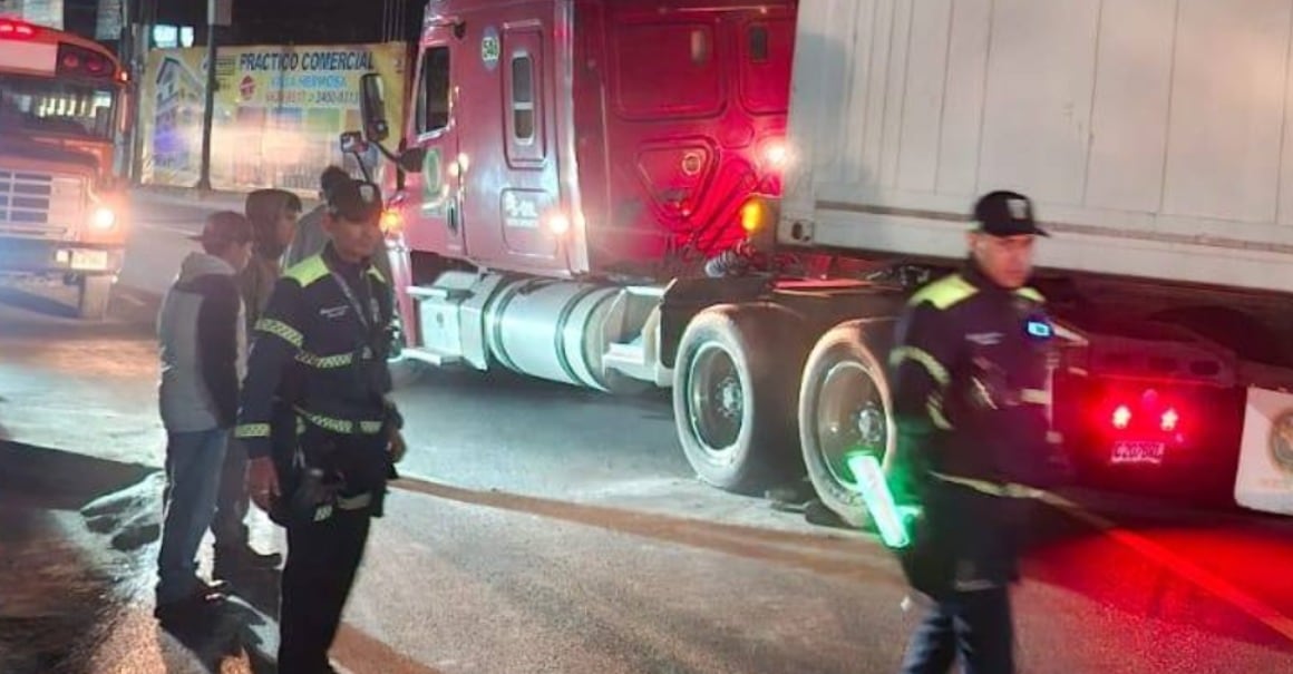 Un tráiler con desperfectos mecánicos complica la circulación en Boca del Monte, luego de quedar varado la madrugada de este viernes 20 de marzo en la 1.ª avenida y 7.ª calle de la zona 1, en el sector conocido como La Vueltona.