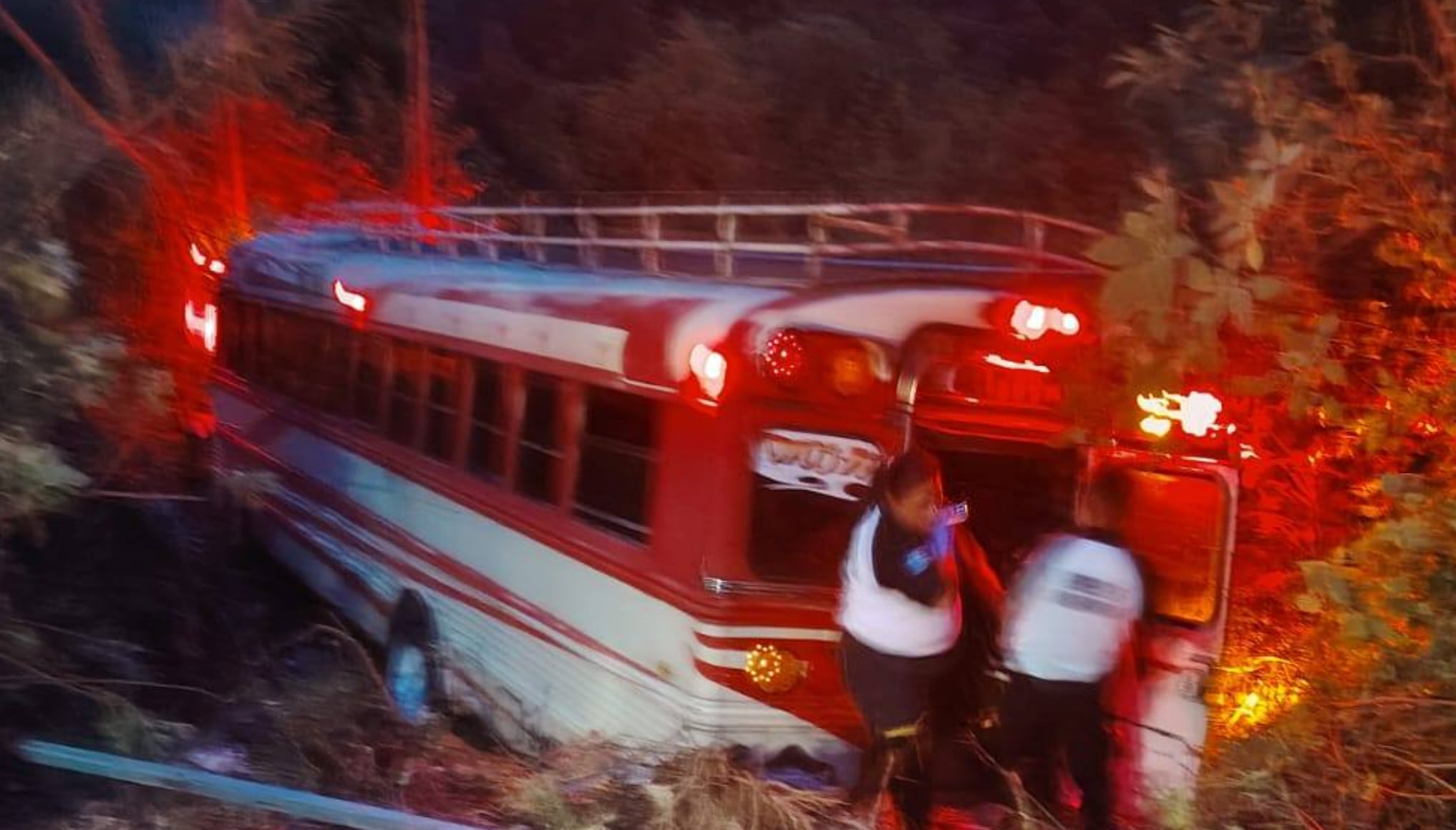 Un autobús del transporte colectivo cayó esta mañana de 7 de abril en una hondonada en la bajada de la aldea El Tablón, en Villa Canales.