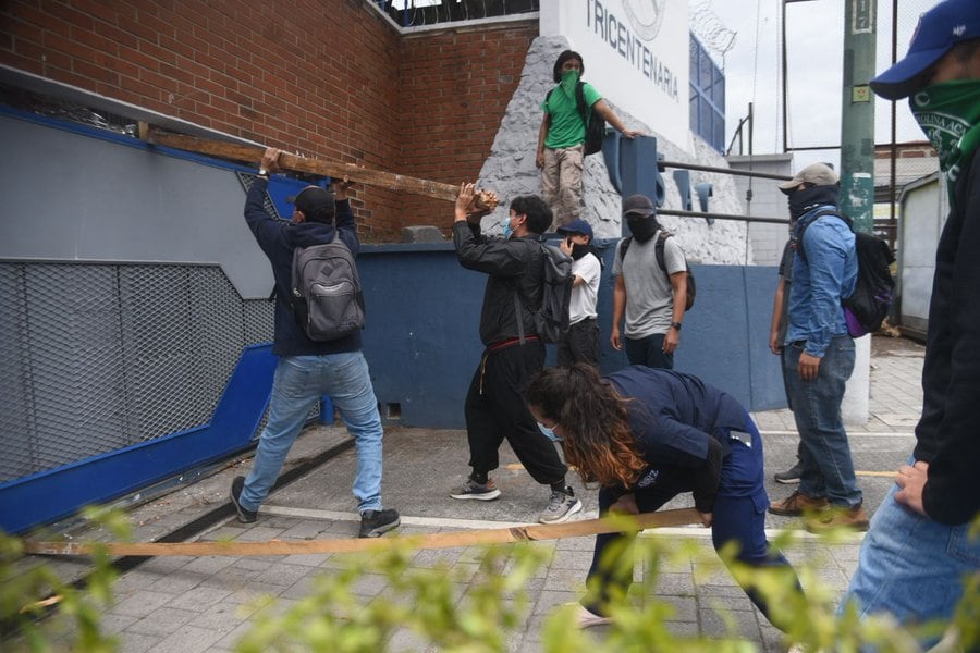 La tensión en la Universidad de San Carlos de Guatemala (USAC) escaló este día, luego de que estudiantes lograran derribar uno de los portones de acceso al campus central e ingresar al recinto.