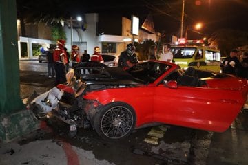 Un carro deportivo convertible estuvo involucrado en un accidente de tránsito en la 6.ª avenida y 13.ª calle de la zona 9, donde colisionó con otro automóvil.