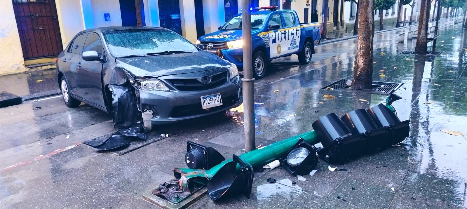 Un incidente de tránsito se registró durante las últimas horas en la intersección de la 6.ª avenida y 5.ª calle de la zona 1 capitalina, en las inmediaciones de la Casa Presidencial. Un vehículo particular perdió el control e impactó directamente contra la estructura de un semáforo, provocando el derribo total del dispositivo de señalización vial.