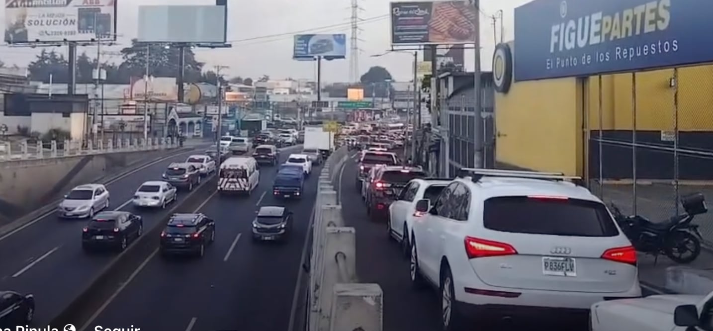 Según el reporte, los problemas de tránsito se originan en el ingreso a Pavón dentro de la jurisdicción de Fraijanes, lo que ha generado una circulación lenta desde el kilómetro 17.5 hacia atrás, afectando considerablemente a los conductores que transitan por el sector.