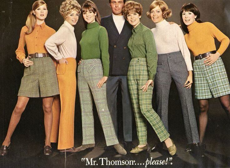 A principios de los 60, los vestidos de silueta recta y los trajes bien estructurados dominaban el panorama. Pero con la llegada del movimiento juvenil, la moda se volvió más audaz. Minifaldas, estampados psicodélicos y colores vibrantes se convirtieron en el símbolo de la nueva generación. La influencia hippie también dejó su huella con prendas holgadas, flecos y patrones florales.