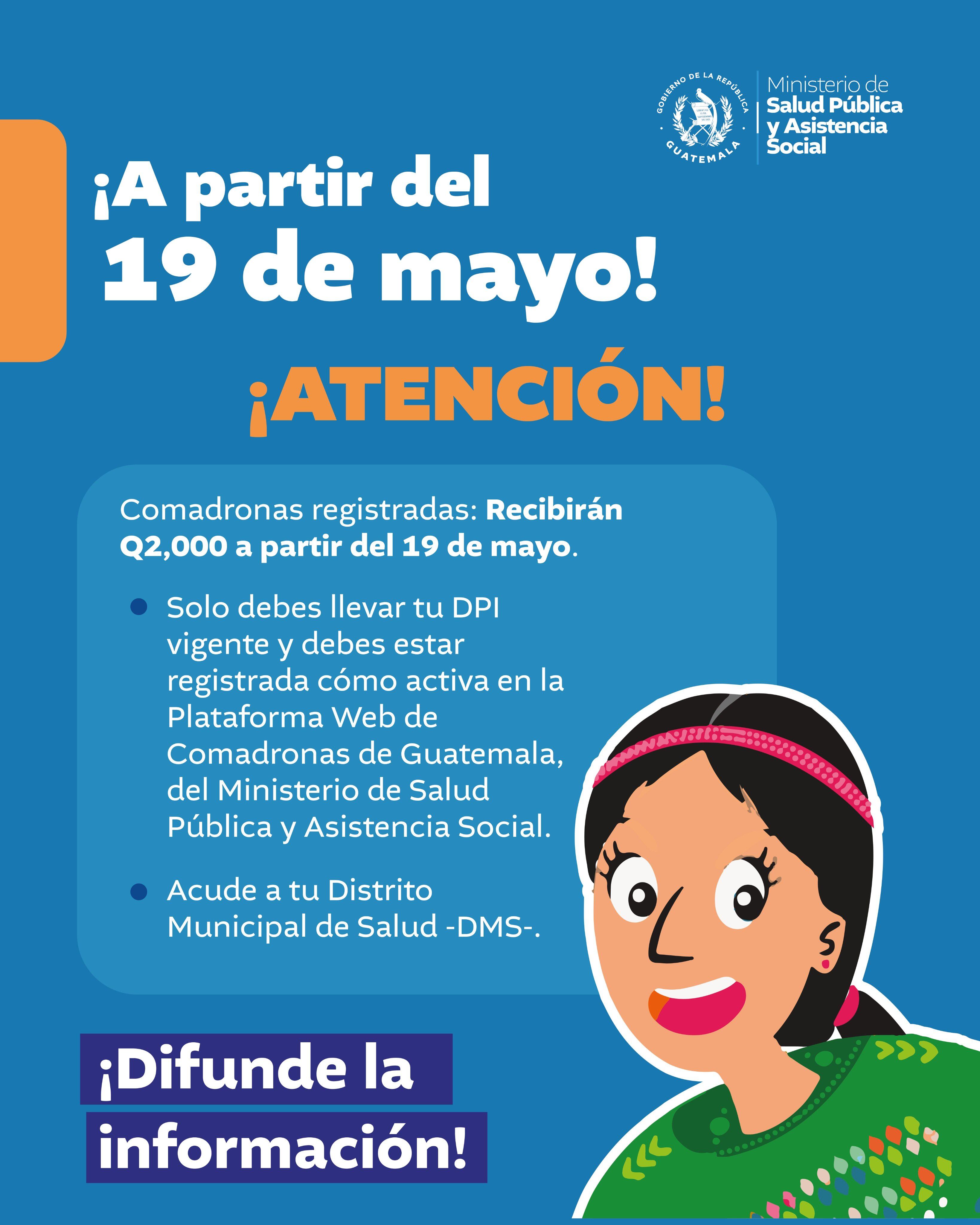 Desde el 19 de mayo, el Ministerio de Salud Pública y Asistencia Social (MSPAS) comenzó a entregar el primer estipendio económico a comadronas registradas oficialmente en su plataforma. Este beneficio reconoce y apoya el trabajo fundamental que realizan en sus comunidades.