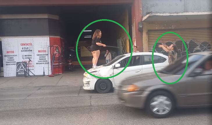Por las imágenes se puede ver que la trifulca ocurre sobre la Calle Martí, lugar que a todo momento del día es muy transitado por miles de vehículos.