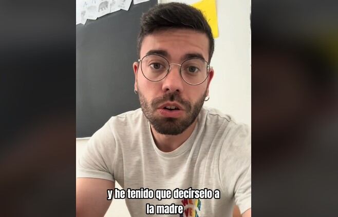 A través de su cuenta @buenosdiasporcierto, el docente contó que cuando iba entrando, vio a una madre que llevaba a su bebé en su carrito o coche, y que éste tenía una especie de soporte en el que tenía un teléfono encendido para que el bebé mirara la pantalla.