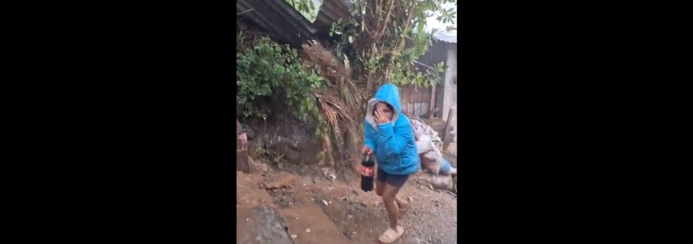En redes sociales circula un video donde una mujer no le importa soportar la lluvia e incluso arriesgar su propia vida por una Coca Cola. La grabación fue acompañada con la canción del artista mexicano Joan Sebastián “Eso y más”.