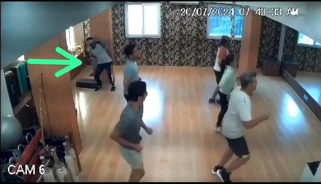 En redes sociales compartieron una grabación en donde aparentemente un hombre pierde la vida en plena rutina de una clase de zumba. Las imágenes muestran, cuando todos al mismo paso siguen al instructor; sin embargo, un sujeto se detiene, se apoya en una columna del salón y se desvanece hasta caer al suelo.