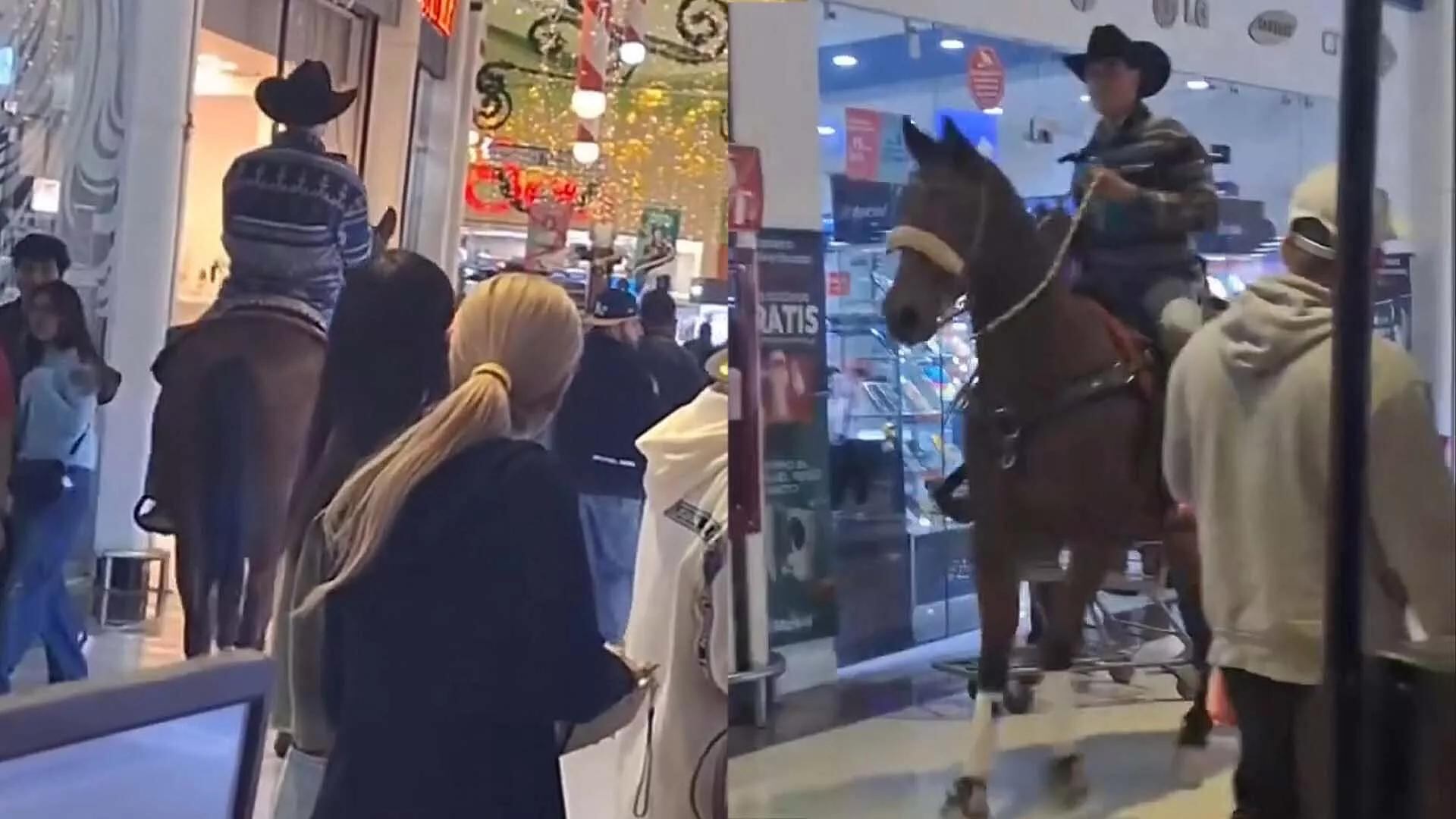 En un centro comercial de Saltillo, Coahuila, México un peculiar evento fue grabado por personas que realizaban compras en el lugar. Un hombre, vestido con camisa, pantalón de mezclilla y sombrero vaquero ingresó cabalgando.