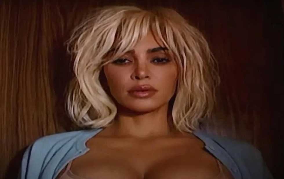 En el video, Kim aparece luciendo una peluca rubia estilo bob mientras se desliza lentamente por el suelo de lo que parece ser una extravagante fiesta navideña.