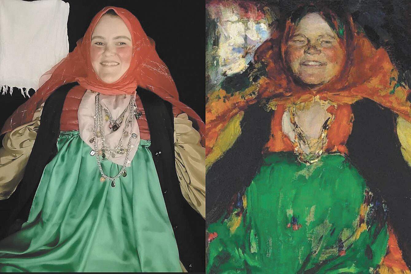 El maquillaje teatral la ayuda a parecerse a las heroínas de cuadros famosos. Incluso consiguió hacerse una segunda barbilla como la de la zarina Sofía.