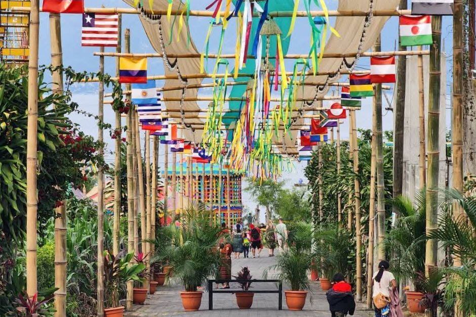 “La calle de las banderas” representa al pueblo Tz’utujil. Es una calle que desea unir y descubrir nuevas raíces y las diferentes culturas de cada país. Cada visitante será recibido con los brazos abiertos y el alma de Guatemala se hará sentir durante recorrer la calle.