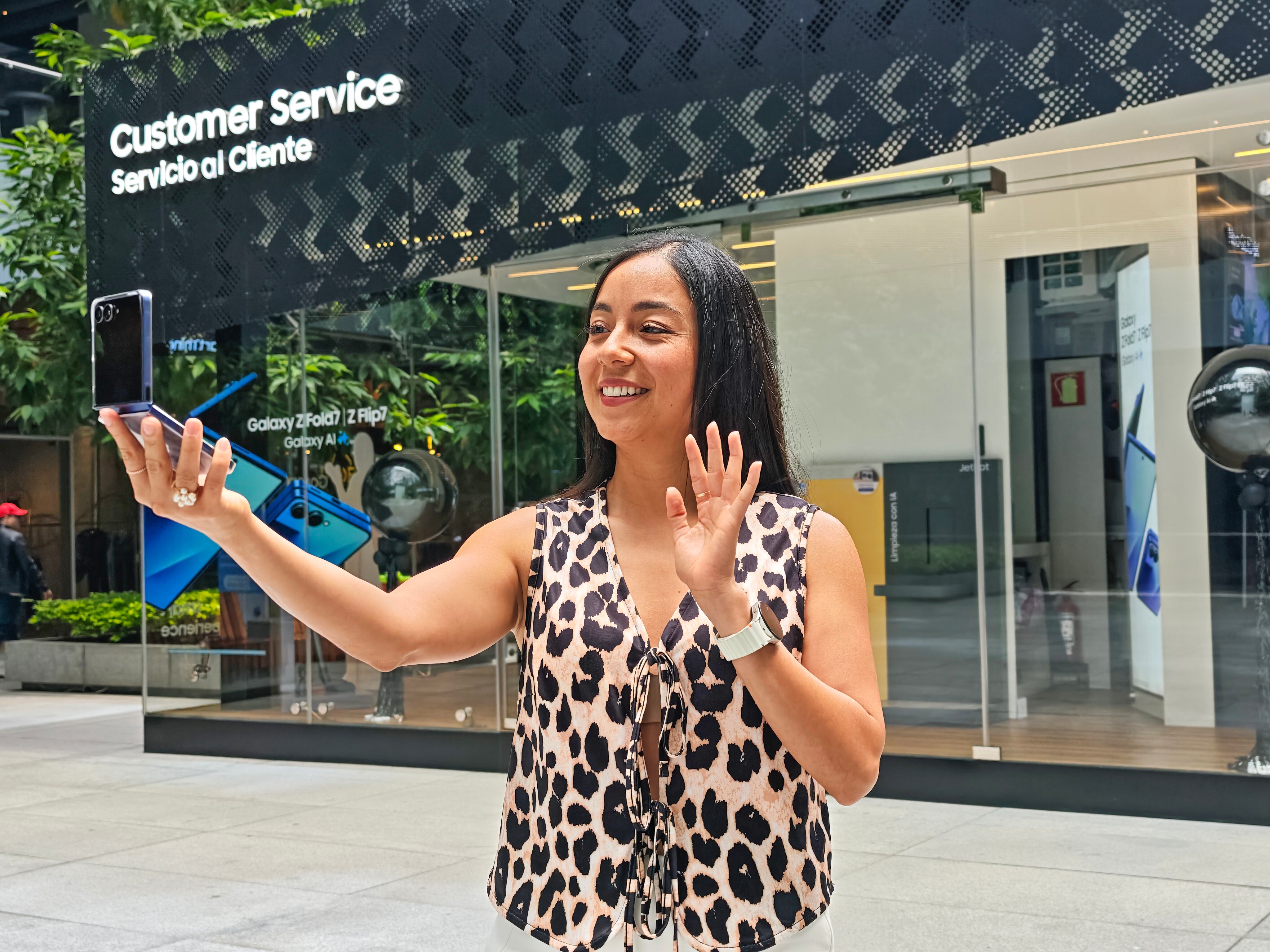 El Galaxy Z Flip 7 es icónico por su diseño compacto, se dobla y cabe en cualquier lado, y para Lupi es una ventaja; mientras más ligero se viaja, mejor. Lo puede guardar en el bolsillo de su pantalón y se acomoda perfecto incluso a la palma de la mano.