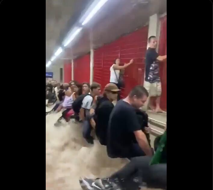 El transporte público también sufrió las consecuencias de las tormentas. Varias estaciones del metro fueron inundadas, incluidas las instalaciones de Jardim Sao Paulo, donde el agua cubrió completamente los andenes y vías. Videos de pasajeros atrapados dentro del metro muestran cómo algunos tuvieron que buscar refugio sentándose sobre barandillas para evitar las corrientes de agua.