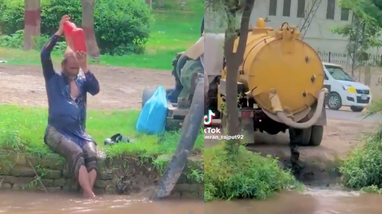 Todo comienza con una pipa tirando, lo que podrían ser, residuos fecales, mas de un momento a otro, la persona que grabó el hecho movió el celular y documento el instante en que un hombre estaba en el mismo lugar, pero bañándose con el agua.