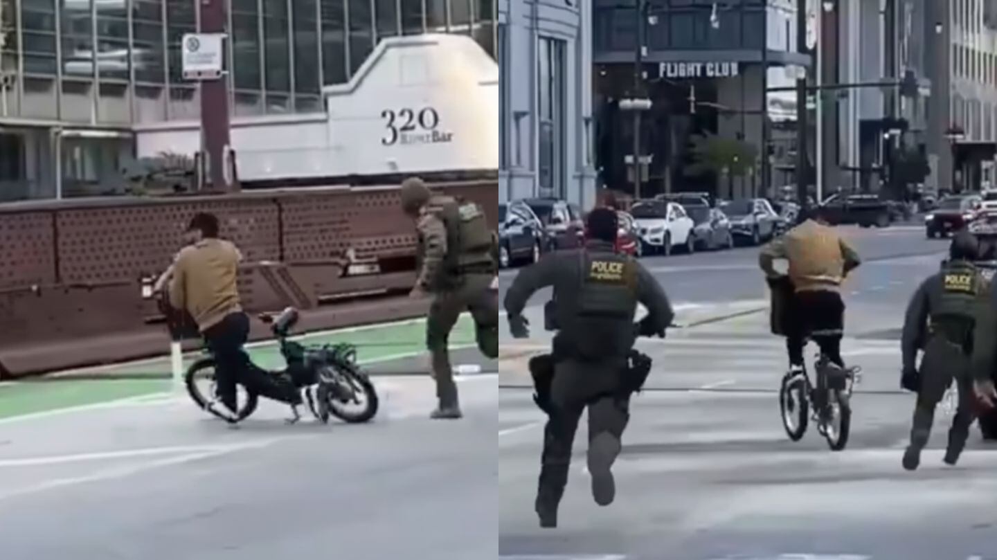 Un video que circula en redes sociales ha capturado la atención de miles de personas, mostrando el momento exacto en que un repartidor en bicicleta evade a varios agentes federales en las calles de Chicago, Illinois. El incidente ocurrió durante una serie de redadas y operativos encabezados por el Servicio de Inmigración y Control de Aduanas (ICE) en zonas céntricas de la ciudad, como el Millennium Park.