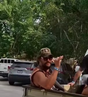 Momoa estuvo acompañado por su novia, Adria Arjona, hija del cantautor guatemalteco Ricardo Arjona. Según las imágenes compartidas en redes sociales, el actor se desplazaba en la palangana de un picop, acompañado de un equipo de seguridad.