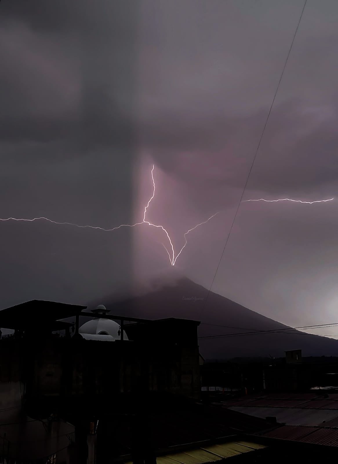 Una intensa tormenta eléctrica se desarrolla en estos momentos sobre el Volcán de Agua, generando un inusual espectáculo visual que ha captado la atención de pobladores y usuarios en redes sociales.