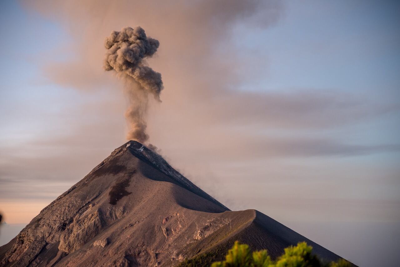 Una impactante vista aérea captada por un dron muestra una de las frecuentes explosiones del volcán de Fuego, uno de los colosos más activos del país.