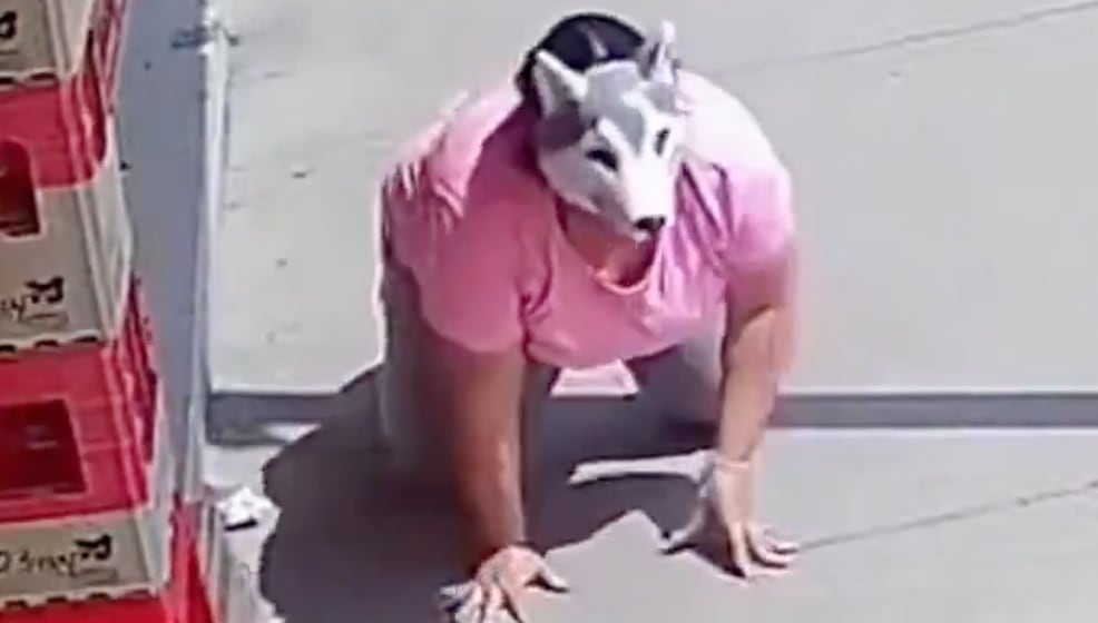 En las imágenes se observa cómo la persona, que vestía una máscara y actuaba como si fuera un animal, se encontraba en la vía pública cuando un perro real se acercó y, de forma repentina, reaccionó de manera agresiva contra ella.
