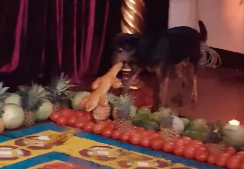Un curioso momento quedó captado en video durante la velación de la Virgen en San Bartolomé Becerra, en Antigua Guatemala, cuando un perrito se coló entre los asistentes y tomó un pan en forma de lagarto que formaba parte de las ofrendas.